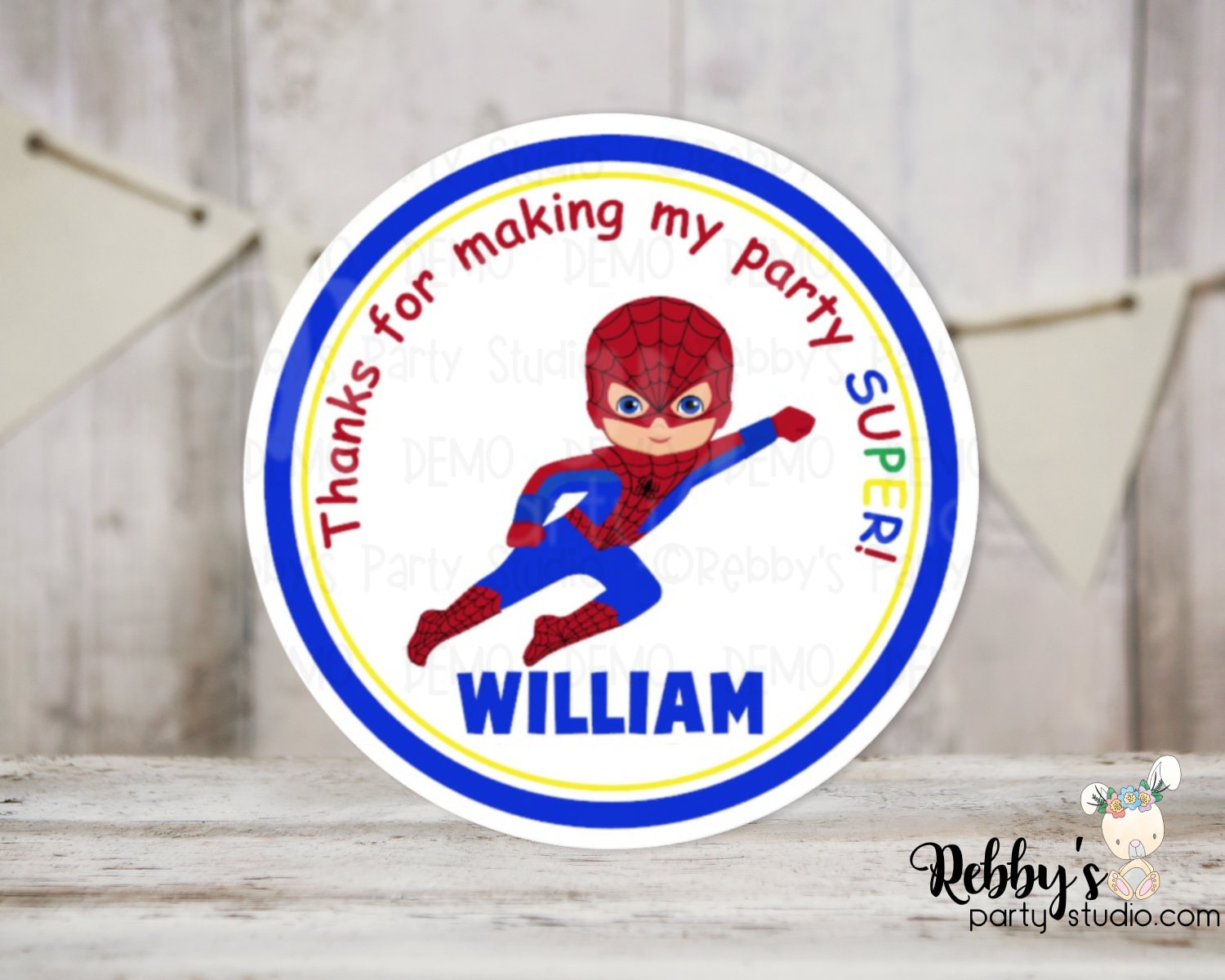 Super Hero Spider Boy Birthday Personalized Round Sticker