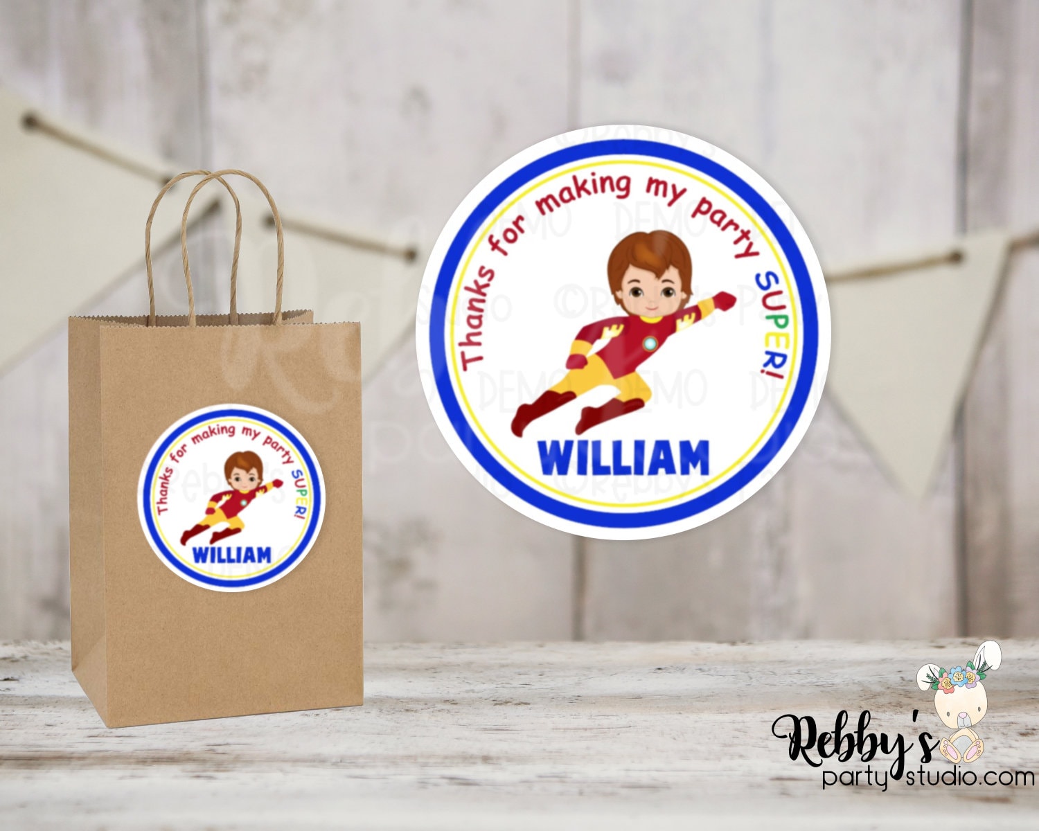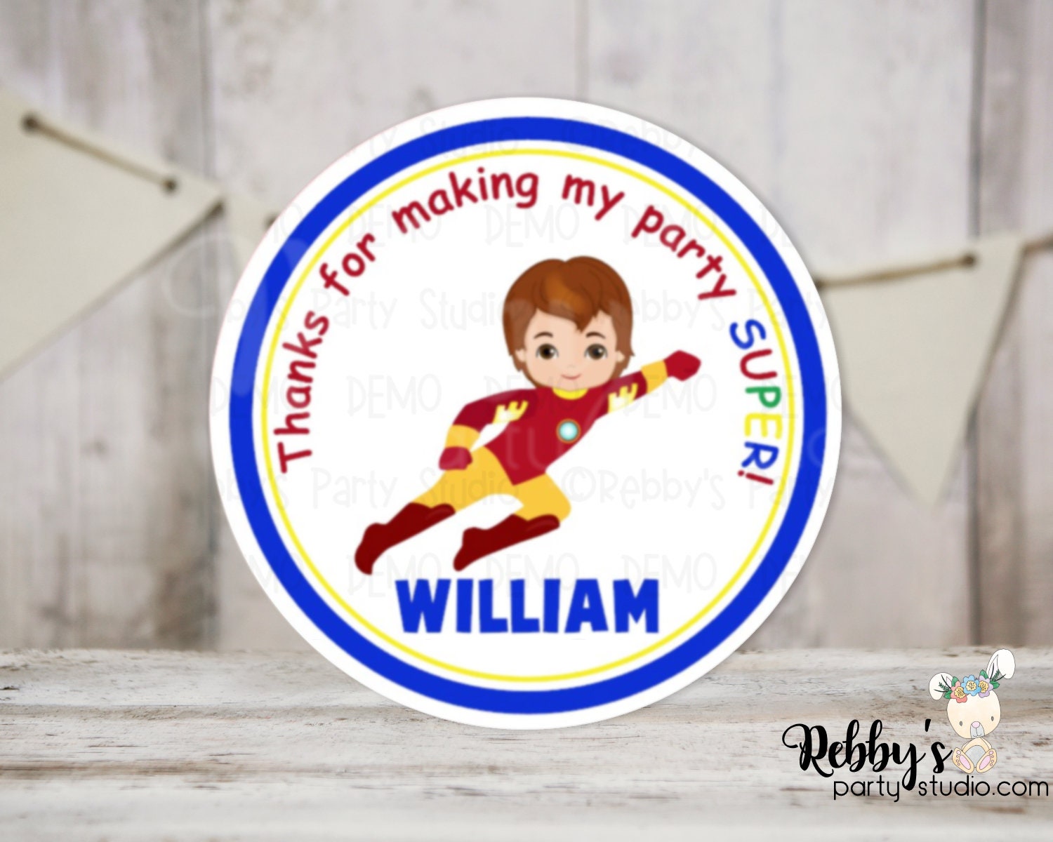 Super Hero Iron Boy Birthday Personalized Round Sticker