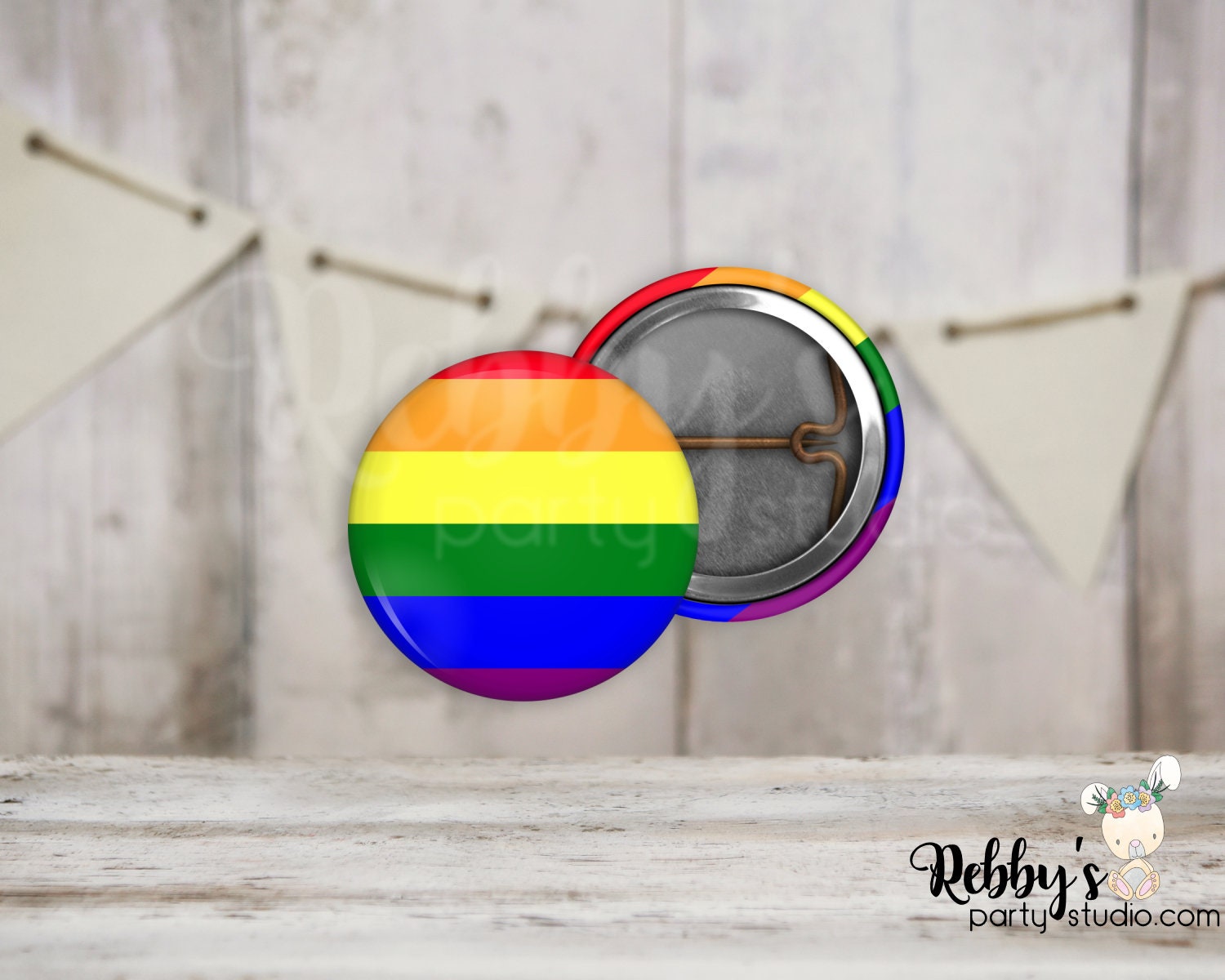 LGBT Pride Flag Pin Back Button, Wear with pride! Image is printed on high quality white matte paper and covered with Mylar. Pin Buttons are hand pressed by me. All buttons are made to order.