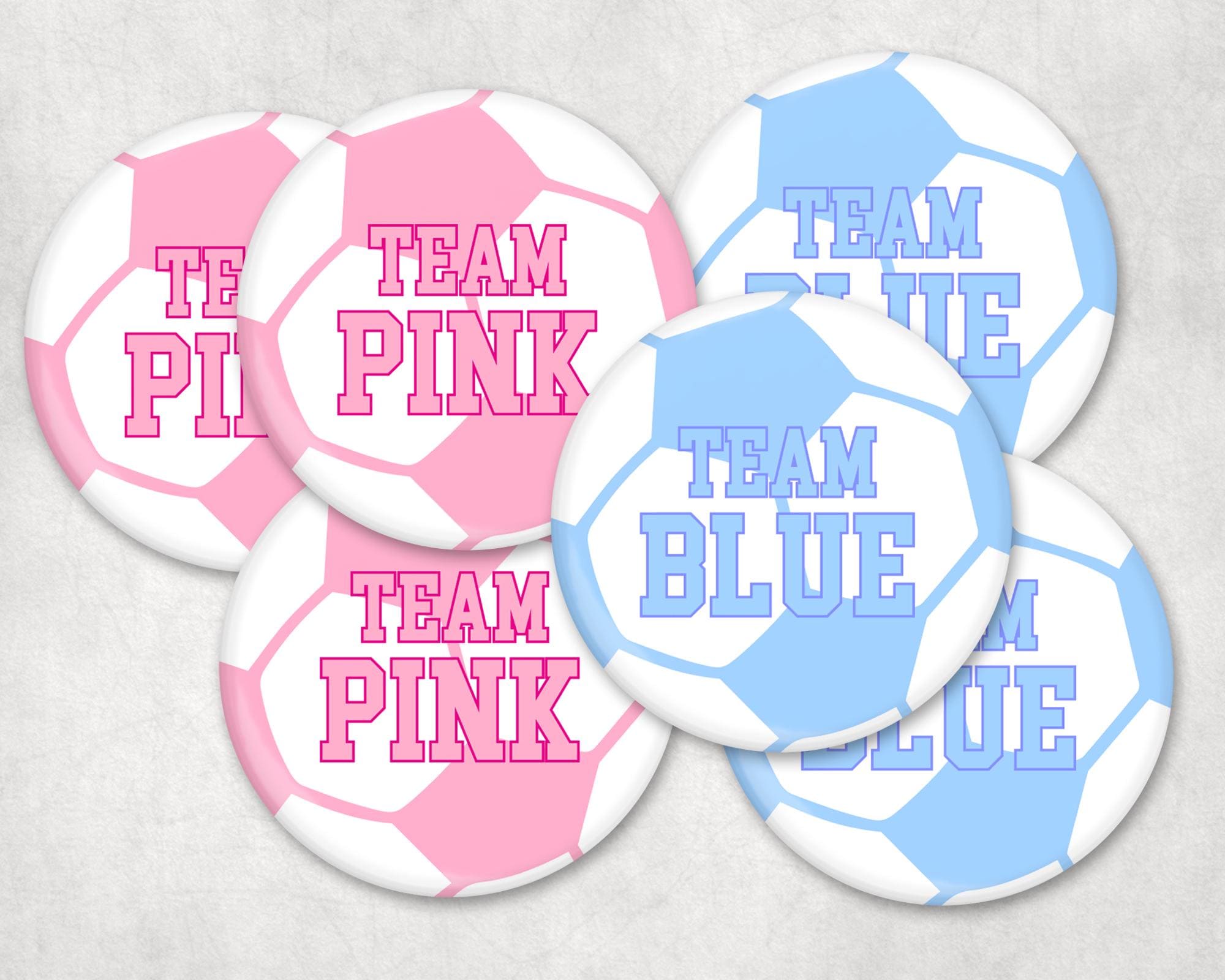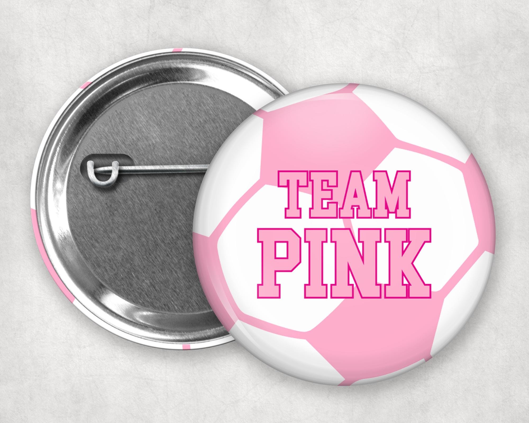 Listing is for Soccer Ball Gender Reveal Pins Team Pink and Team Blue pin back buttons. Images are printed on high quality white matte paper and covered with mylar. Pin Buttons are hand pressed by me. All buttons are made to order.