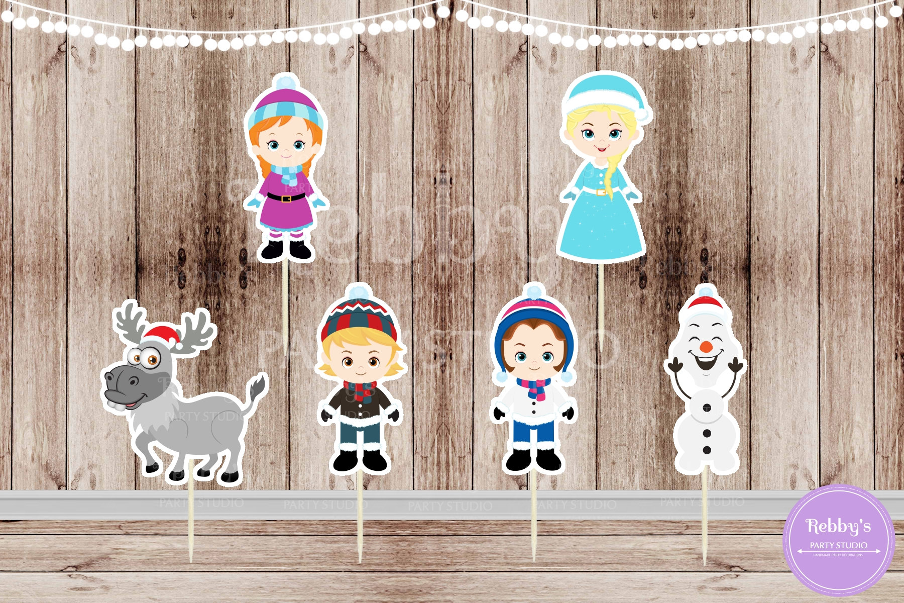 Set of 12 Assorted Christmas Snow Princess cupcake toppers printed on high quality cardstock glued to a round sturdy toothpick, you will receive 12 picks 2 of each shown in the sample picture. Toppers are handcrafted and handmade by me for a unique look that can't be found in a regular party supply store. They have many uses you can place them on cupcakes, cookies, sandwiches, brownies, fruits, cheese and more!