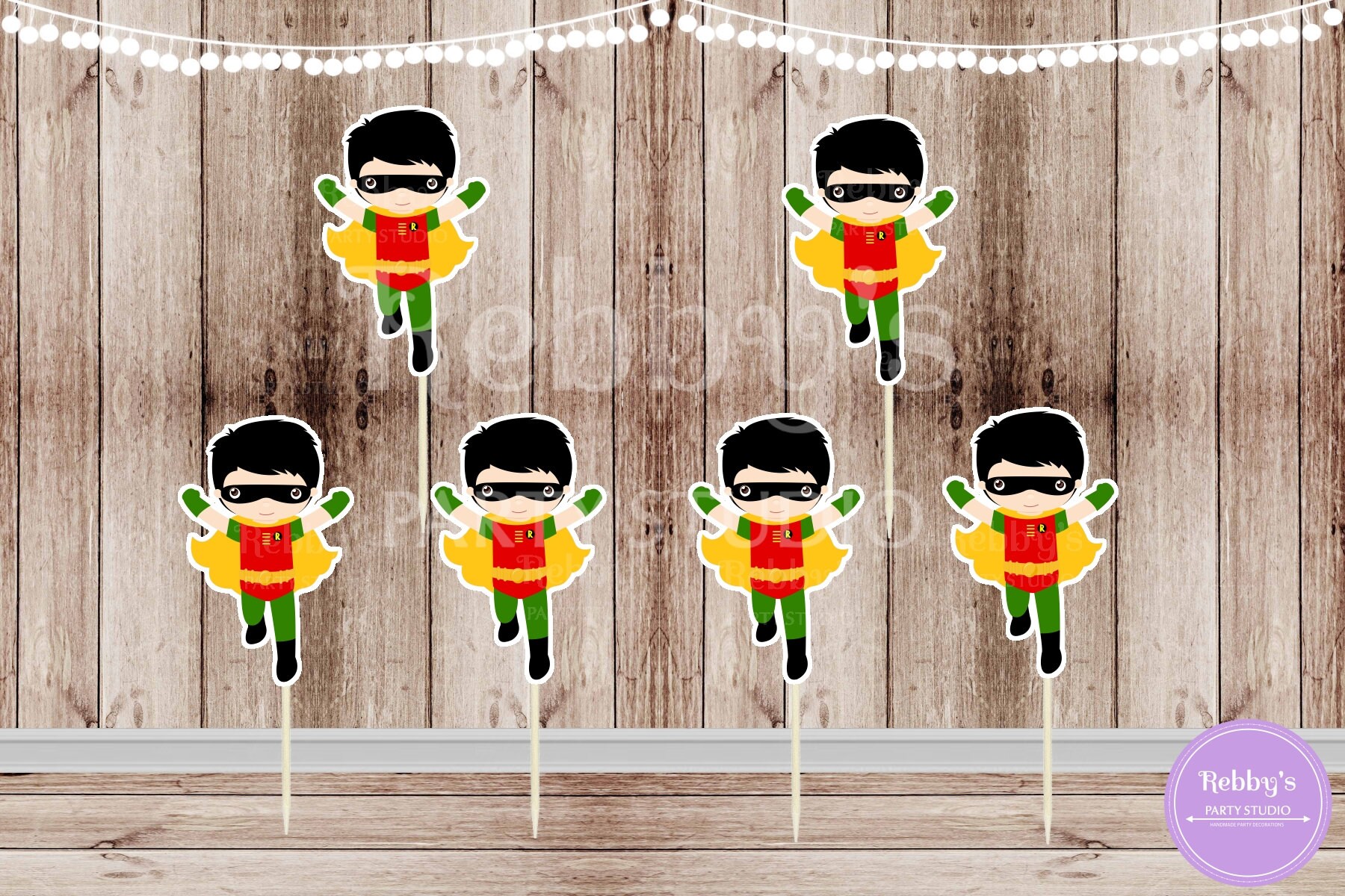 Set of 12 Robin cupcake toppers printed on high quality cardstock glued to a round sturdy toothpick, you will receive 12 picks shown in the sample picture. Toppers are handcrafted and handmade by me for a unique look that can't be found in a regular party supply store. They have many uses you can place them on cupcakes, cookies, sandwiches, brownies, fruits, cheese and more!