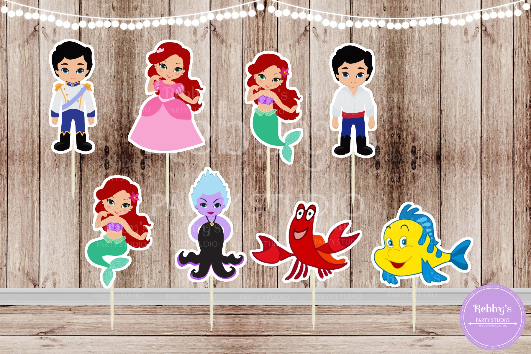 Set of 16 Assorted Mermaid and Friends cupcake toppers printed on high quality cardstock glued to a round sturdy toothpick, you will receive 16 picks 2 of each shown in the sample picture. Toppers are handcrafted and handmade by me for a unique look that can't be found in a regular party supply store. They have many uses you can place them on cupcakes, cookies, sandwiches, brownies, fruits, cheese and more!