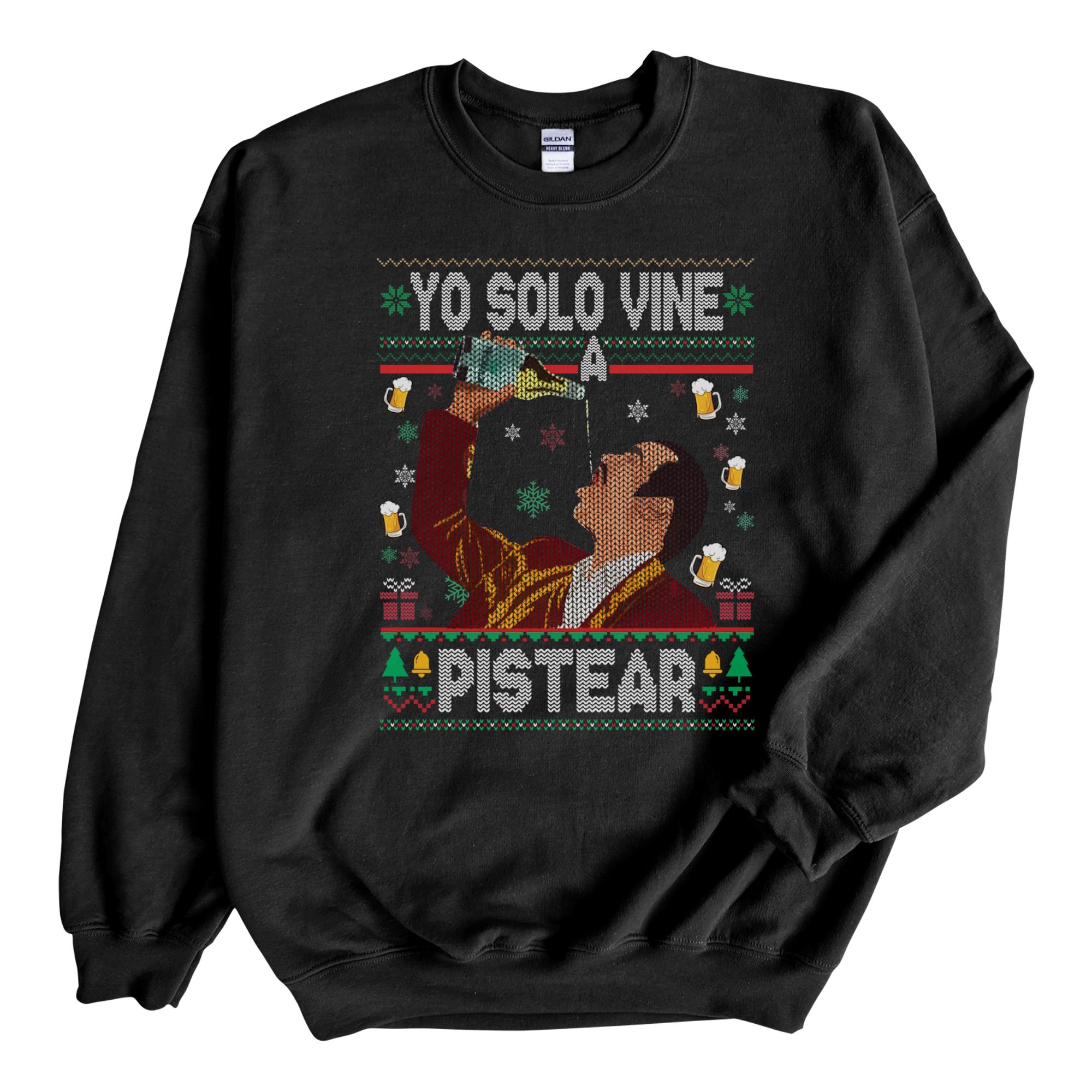 Bring the laughs to your holiday celebrations with this funny “Yo Solo Vine A Pistear” Christmas sweatshirt. Designed for those who love good vibes, holiday drinks, and a little Spanglish humor, this cozy piece is perfect for ugly sweater parties and festive gatherings.