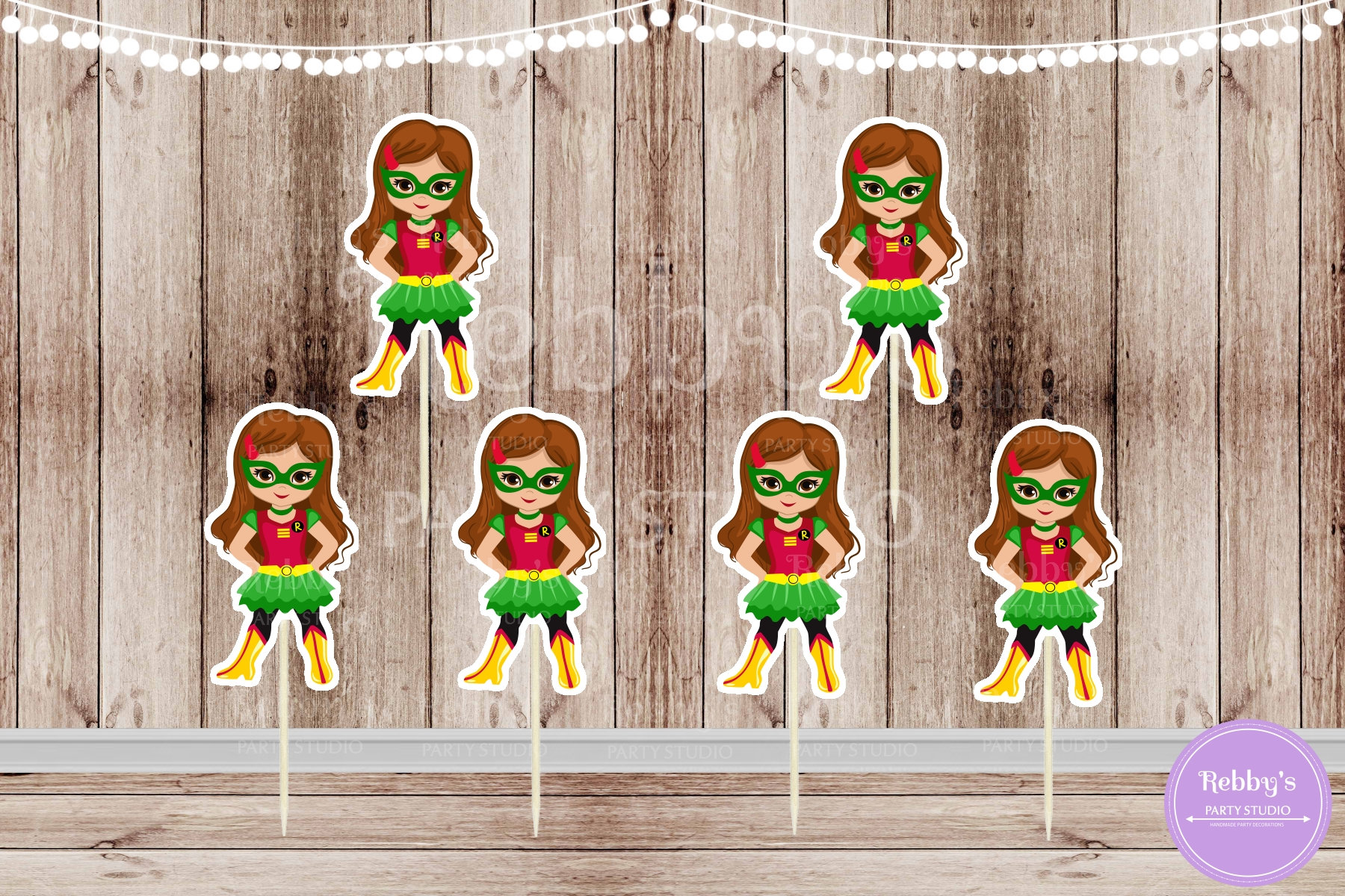 Superhero Villain Girl Party - Set of 12 Robin Girl Inspired Cupcake Toppers