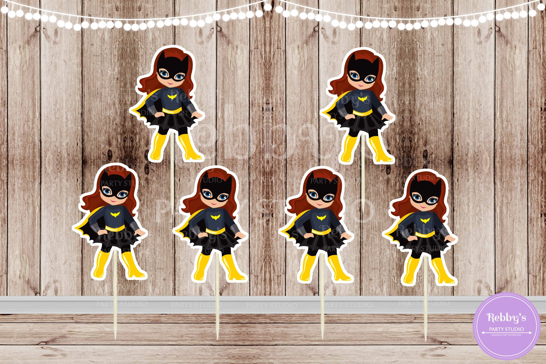Set of 12 Girl in Bat Costume cupcake toppers printed on high quality cardstock glued to a round sturdy toothpick, you will receive 12 picks shown in the sample picture. Toppers are handcrafted and handmade by me for a unique look that can't be found in a regular party supply store. They have many uses you can place them on cupcakes, cookies, sandwiches, brownies, fruits, cheese and more!