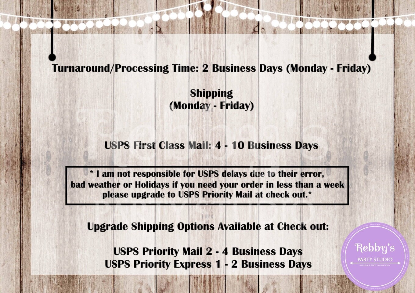 To determine when your order will arrive, allow 2 to 3 business days for processing plus the transit time of your choosing, the processing time is to personalize, print, cut, assemble, pack.