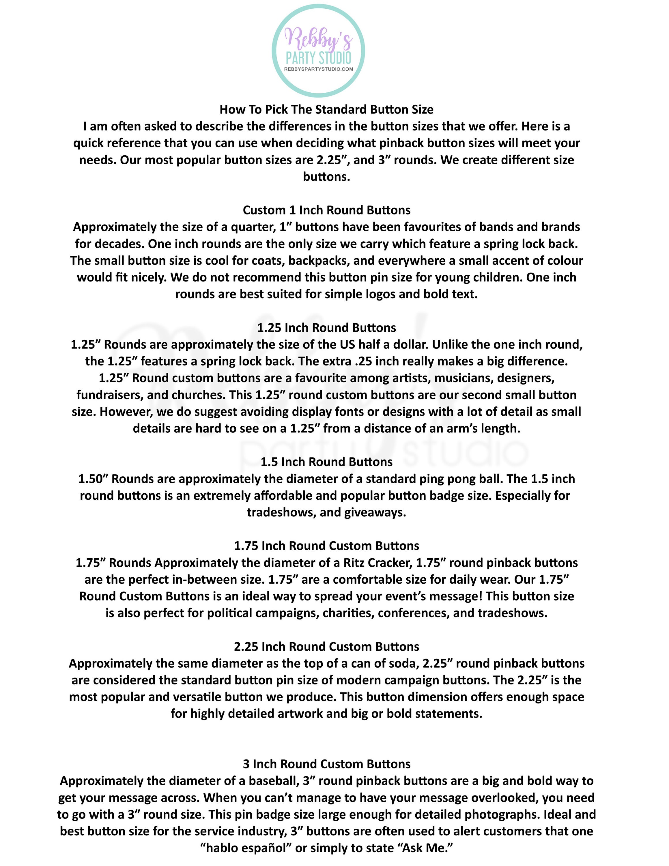 Each button is printed on high-quality white matte paper, sealed with a protective mylar cover, and hand-pressed by me. All buttons are made to order.