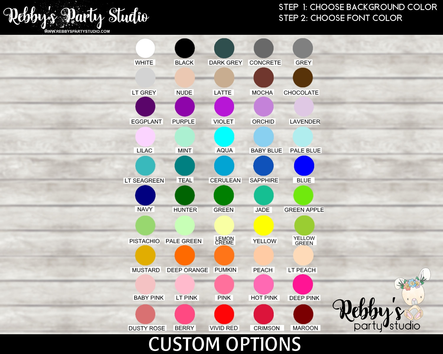 In the personalization box, enter your color choices