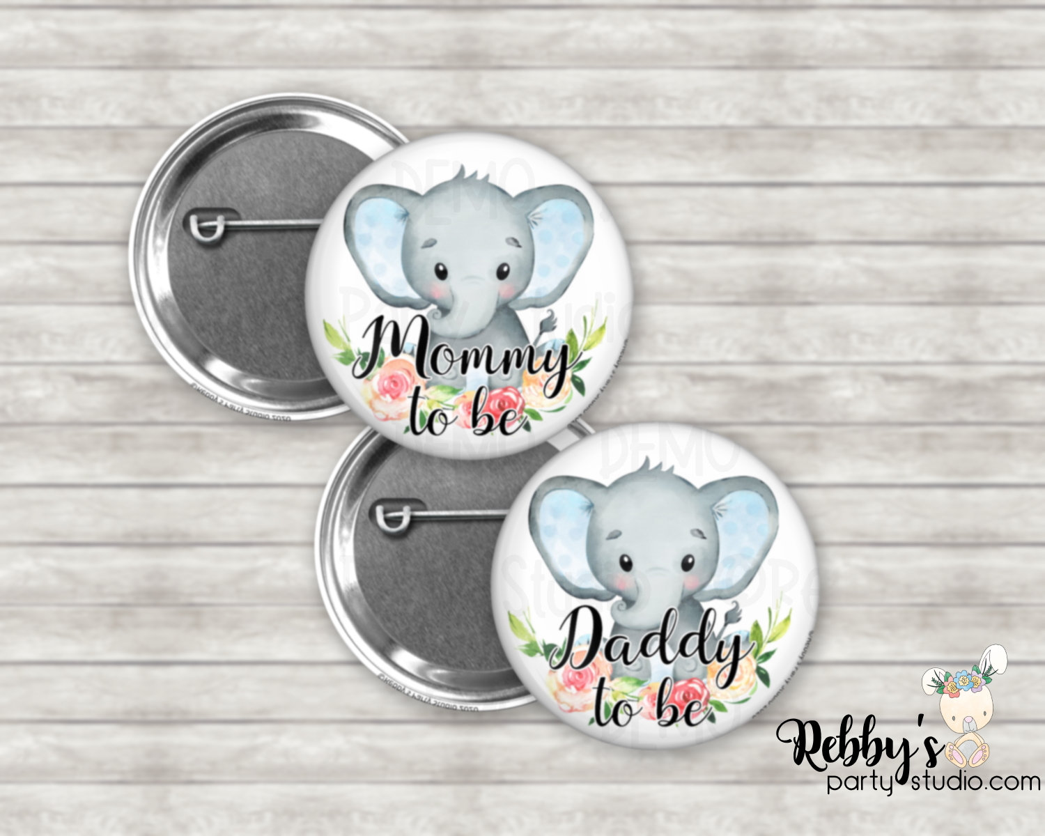 Custom personalized button pins, custom printed with any name, title or phrase. (Ex. Mommy to be, Mommy, Dad to be, or Daddy, Sister to be, etc.) These are a grate addition to any party.