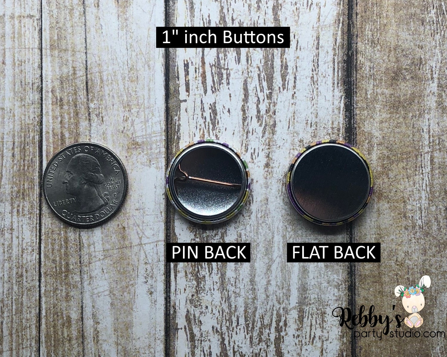 Pin Back – Pin them everywhere! Backpacks, clothing, purses, the sky is the limit! They are also perfect for party favors!