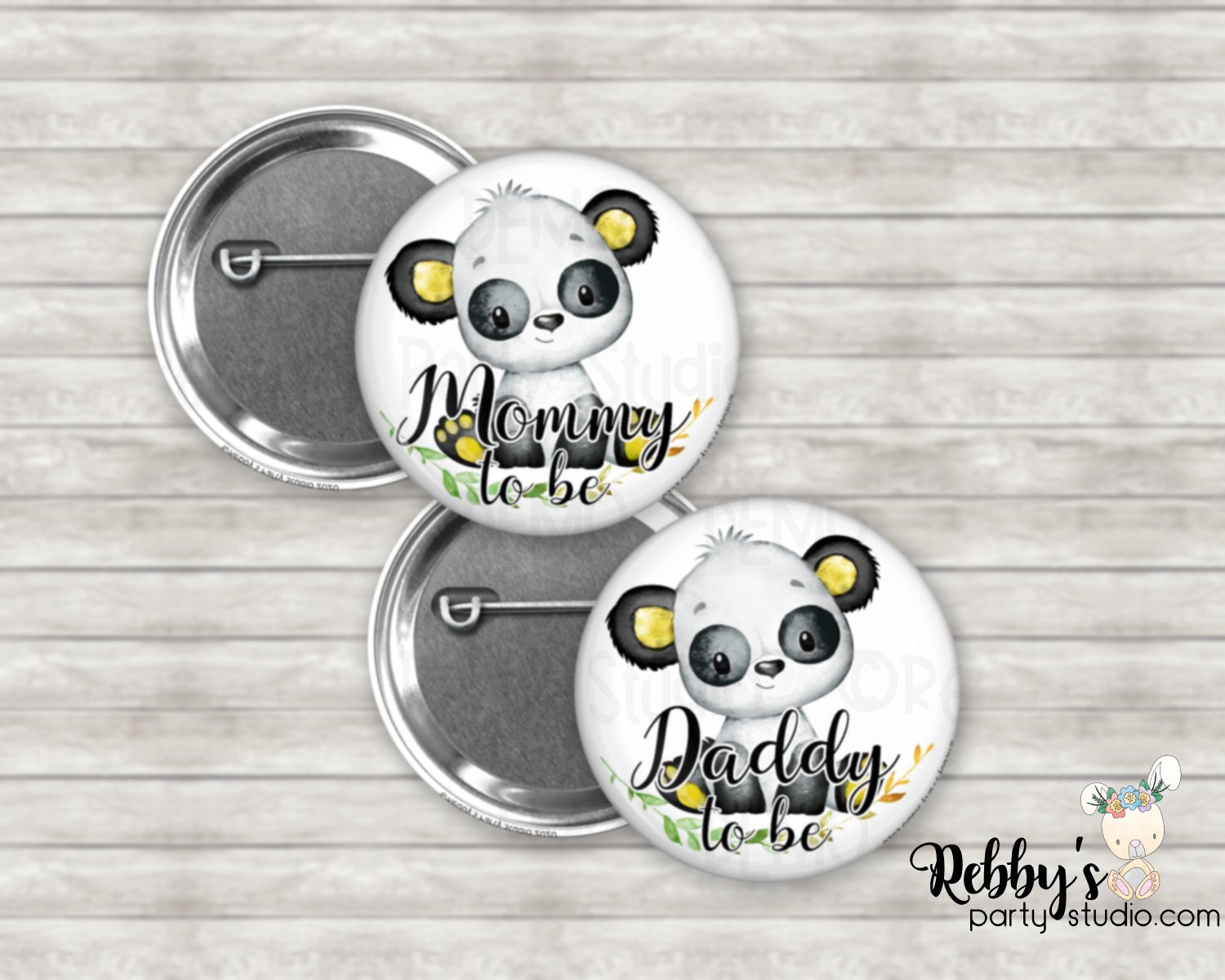 Custom personalized button pins, custom printed with any name, title or phrase. (Ex. Mommy to be, Mommy, Dad to be, or Daddy, Sister to be, etc.) These are a grate addition to any party.