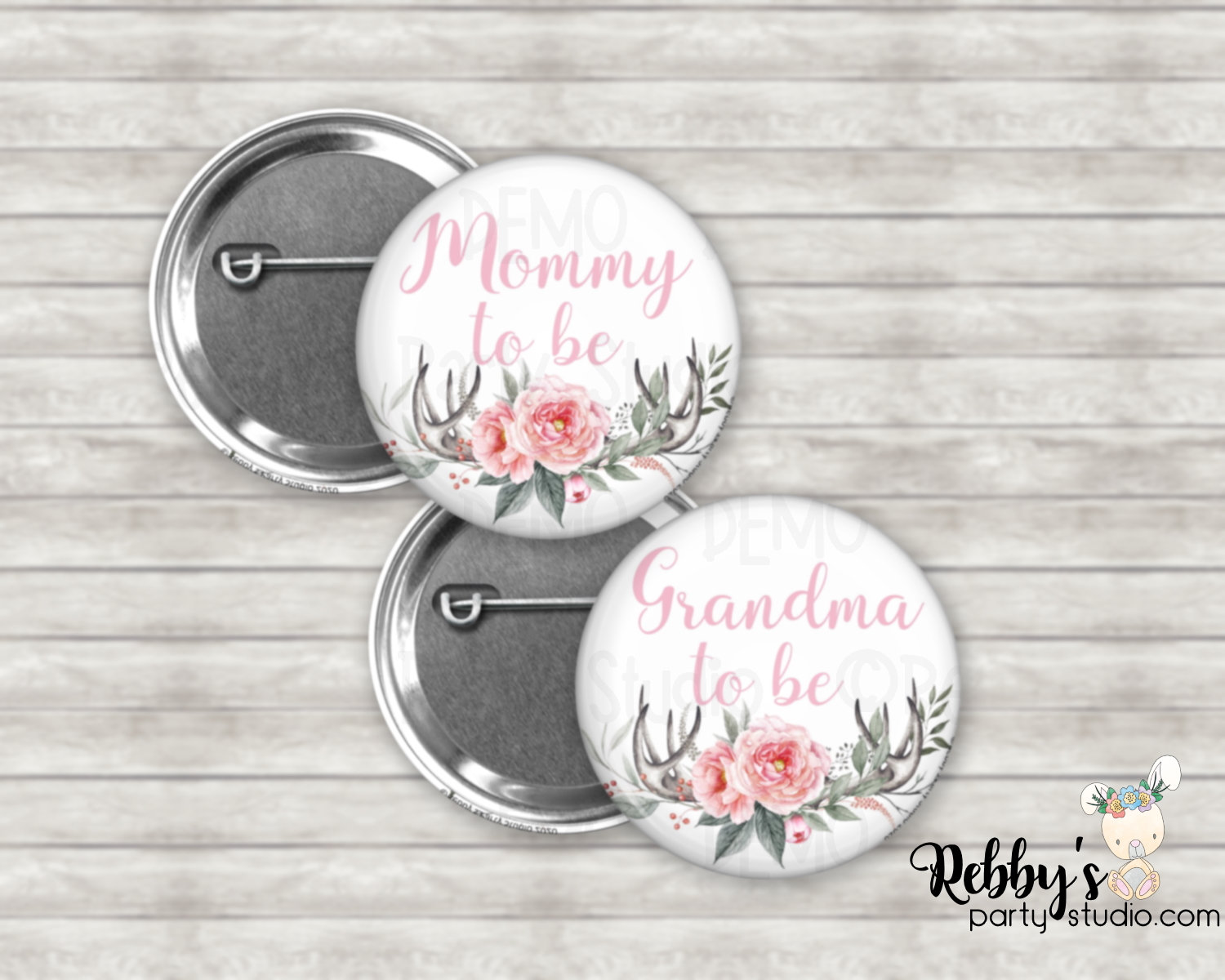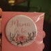 Custom personalized button pin, custom printed with any name, title or phrase. (Ex. Mommy to be, Mommy, Dad to be, or Daddy, Sister to be, etc.) These are a grate addition to any party.