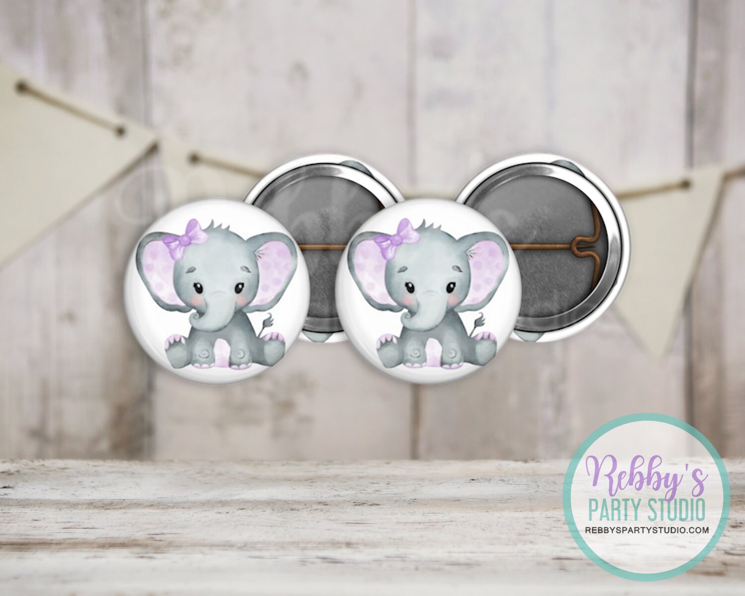 This listing is for Purple Elephant Gender Reveal, 1" inch Mini Pin Buttons.