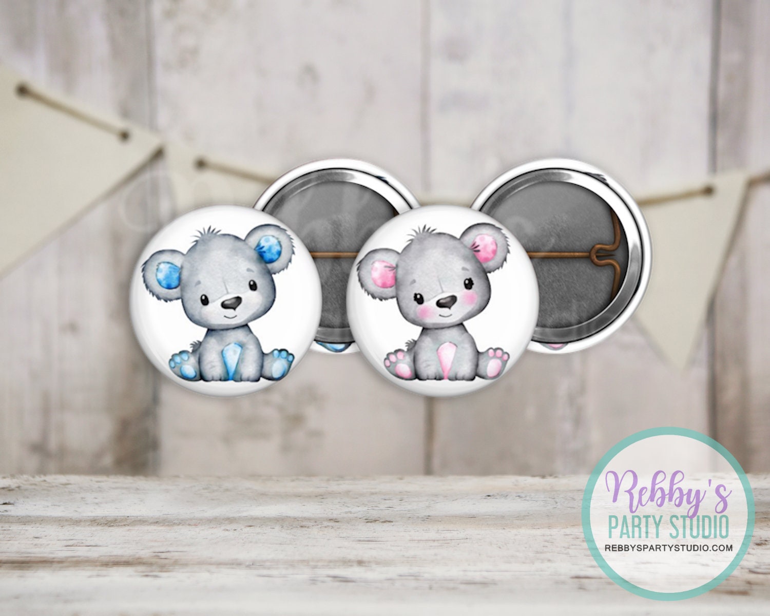 This listing is for Pink and Blue Teddy Bear Gender Reveal, 1" inch Mini Pin Buttons.