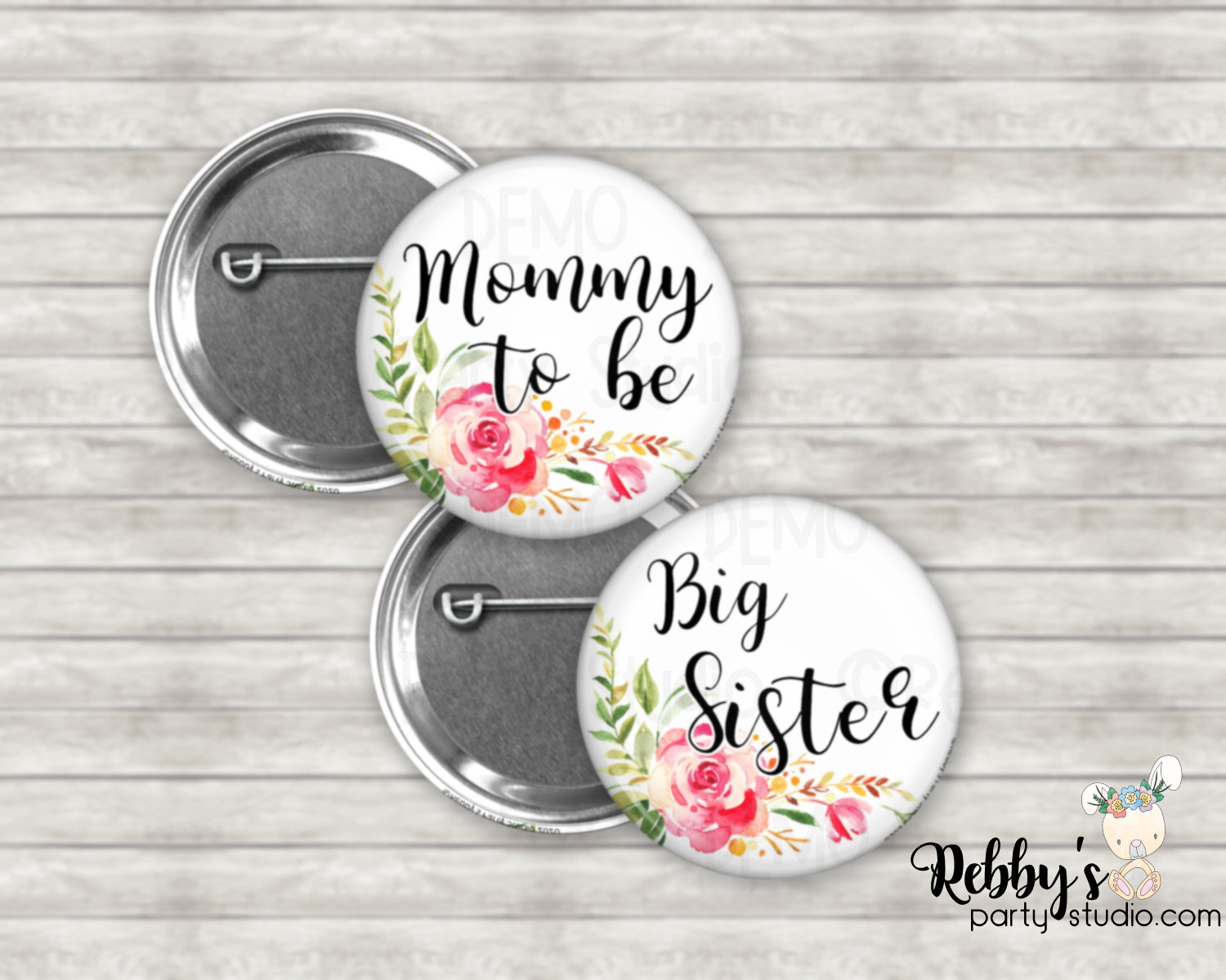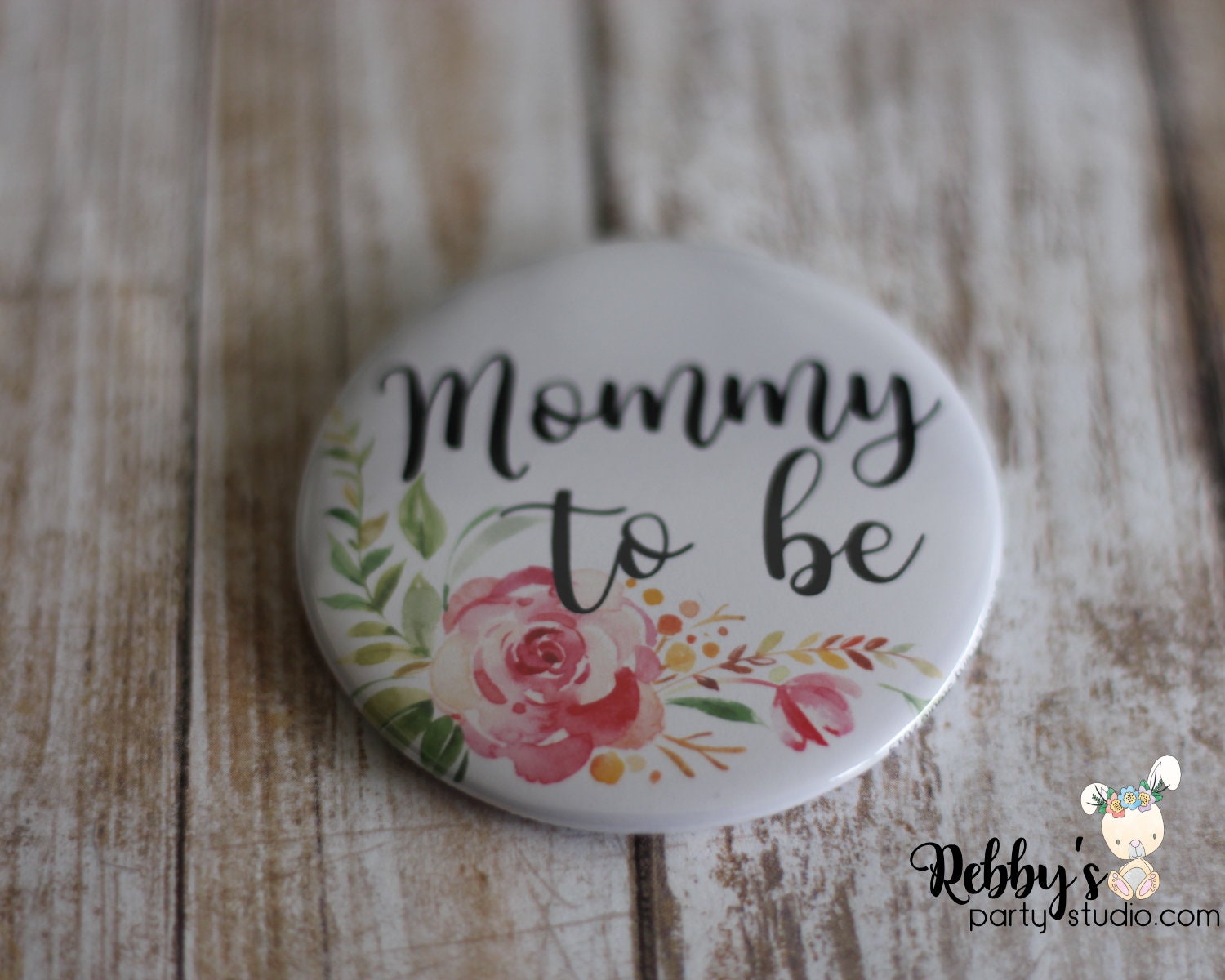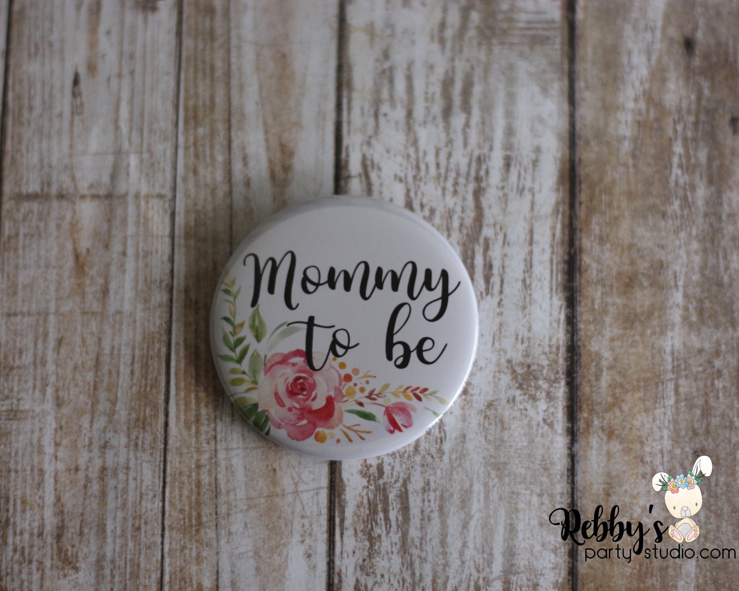 Custom personalized button pin, custom printed with any name, title or phrase. (Ex. Mommy to be, Mommy, Dad to be, or Daddy, Sister to be, etc.) These are a grate addition to any party.