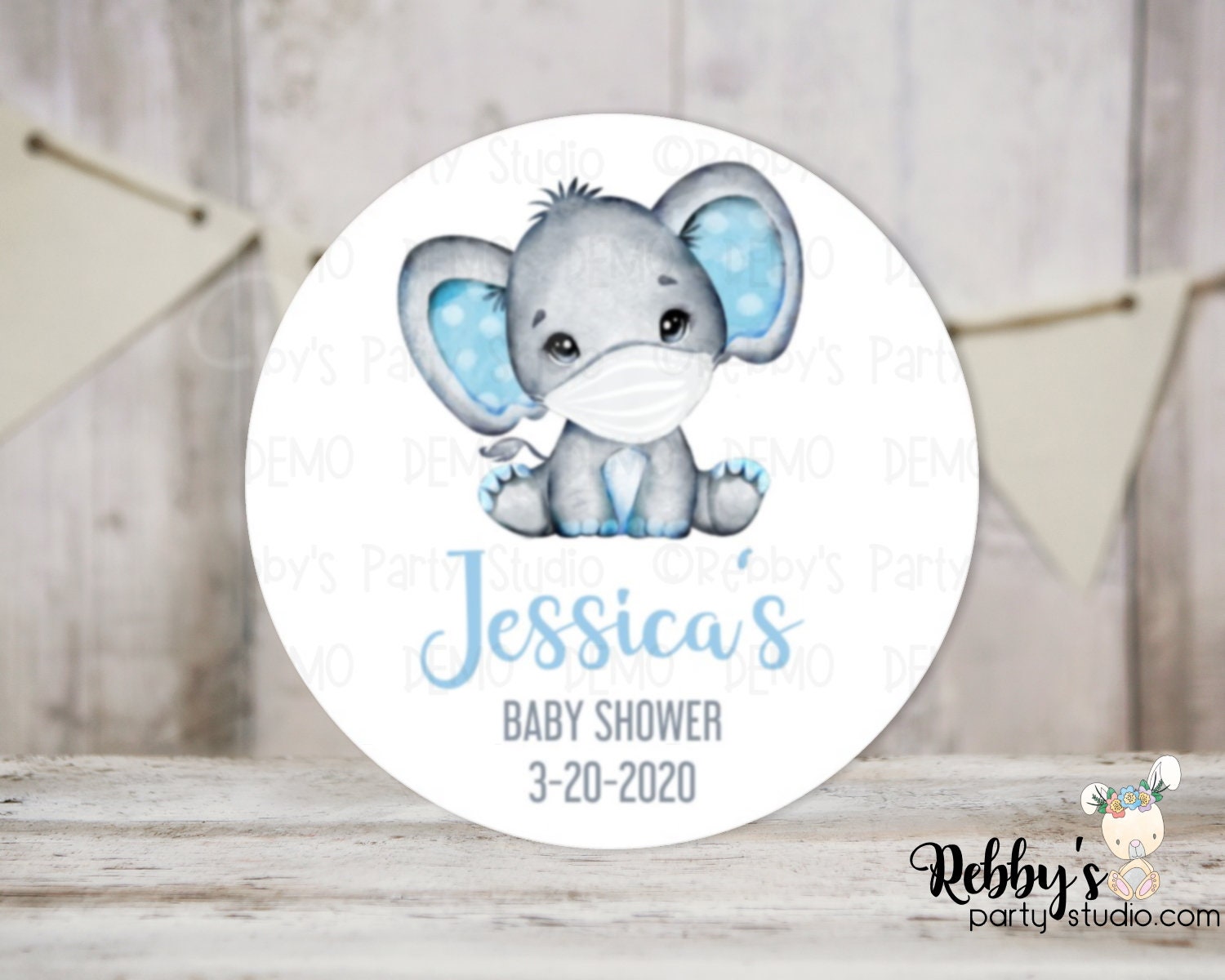 Elephant Baby Shower Stickers: Personalized Favor Stickers